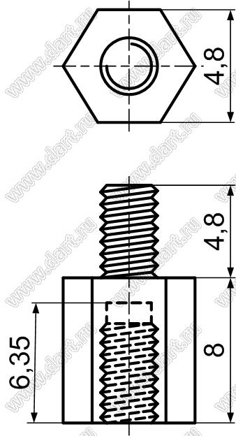 Каталог > Фурнитура для электронных устройств > Крепеж металлический (метизы) и пластиковый > Стойки резьбовые > Стойки резьбовые пластиковые > Шестигранные > TP440 серия > TP440-8S
