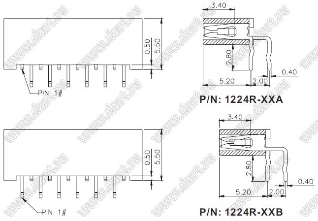 Каталог > Электронные компоненты, радиодетали > Разъёмы (соединители, переходники) > Разъемы FFC/FPC для печатного шлейфа > Шаг 1,0 мм > 1224R-xxB серия > 1224R-08B