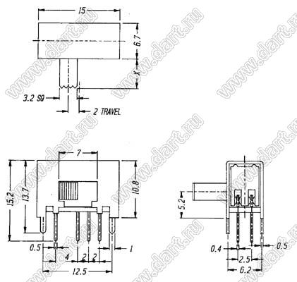 Каталог > Электронные компоненты, радиодетали > Переключатели, кнопки > Переключатели движковые (SLIDE) > Переключатели движковые (SLIDE) угловые > SK-23D03-G8