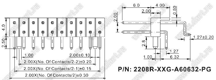 Каталог > Электронные компоненты, радиодетали > Разъёмы (соединители, переходники) > Разъемы плата-плата (межплатные) > шаг 2,00x2,00 мм (разъемы межплатные штыревые и гнезда для них) > двухрядные > 2208R-XXG-A60632-PG серия > 2208R-32G-A60632-PG
