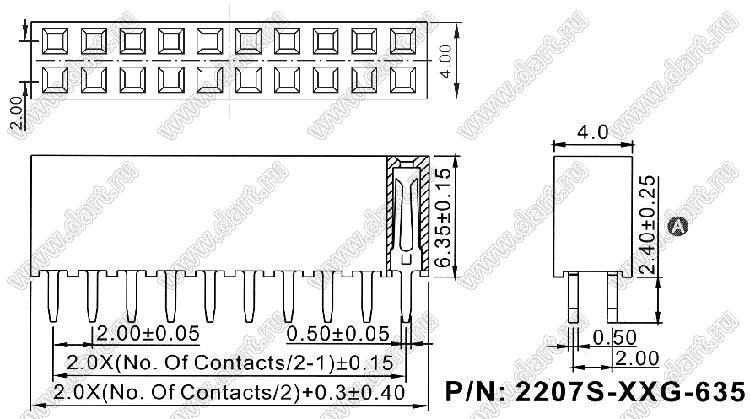 Каталог > Электронные компоненты, радиодетали > Разъёмы (соединители, переходники) > Разъемы плата-плата (межплатные) > шаг 2,00x2,00 мм (разъемы межплатные штыревые и гнезда для них) > двухрядные > 2207S-XXG-635 серия > 2207S-62G-635