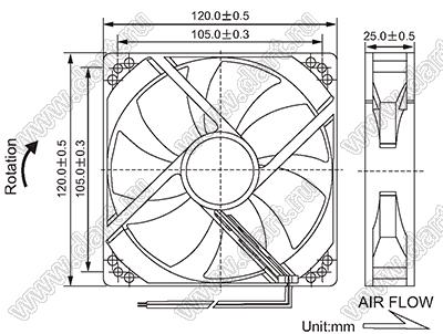 Каталог > Корпусные и установочные изделия > Устройства охлаждения > Вентиляторы > Вентиляторы осевые постоянного тока (DC) > DF12 серия (120x120x25мм) > DF12S12H