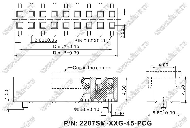 Каталог > Электронные компоненты, радиодетали > Разъёмы (соединители, переходники) > Разъемы плата-плата (межплатные) > шаг 2,00x2,00 мм (разъемы межплатные штыревые и гнезда для них) > двухрядные > 2207SM-XXG-45-PCG серия > 2207SM-32G-45-PCG