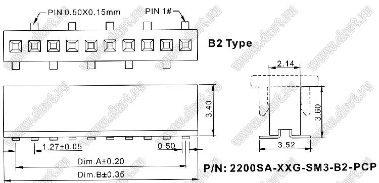 Каталог > Электронные компоненты, радиодетали > Разъёмы (соединители, переходники) > Разъемы плата-плата (межплатные) > шаг 1,27x1,27 мм (разъемы межплатные штыревые и гнезда для них) > однорядные > 2200SA-XXG-SM3-B2-PCP серия > 2200SA-14G-SM3-B2-PCP