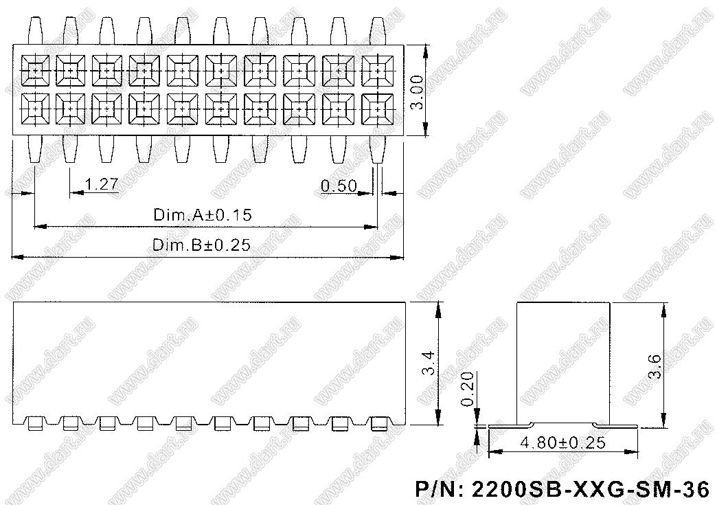 Каталог > Электронные компоненты, радиодетали > Разъёмы (соединители, переходники) > Разъемы плата-плата (межплатные) > шаг 1,27x1,27 мм (разъемы межплатные штыревые и гнезда для них) > двухрядные > 2200SB-XXXG-SM-36 серия > 2200SB-094G-SM-36