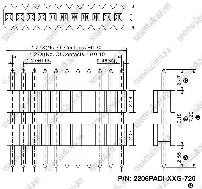 Каталог > Электронные компоненты, радиодетали > Разъёмы (соединители, переходники) > Разъемы плата-плата (межплатные) > шаг 1,27x2,54 мм (разъемы межплатные штыревые и гнезда для них) > однорядные > 2206PADI-XXG-720 серия > 2206PADI-05G-720