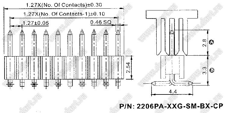 Каталог > Электронные компоненты, радиодетали > Разъёмы (соединители, переходники) > Разъемы плата-плата (межплатные) > шаг 1,27x2,54 мм (разъемы межплатные штыревые и гнезда для них) > однорядные > 2206PA-XXG-SM-B1-XXXX-CP серия > 2206PA-28G-SM-B1-2833-CP