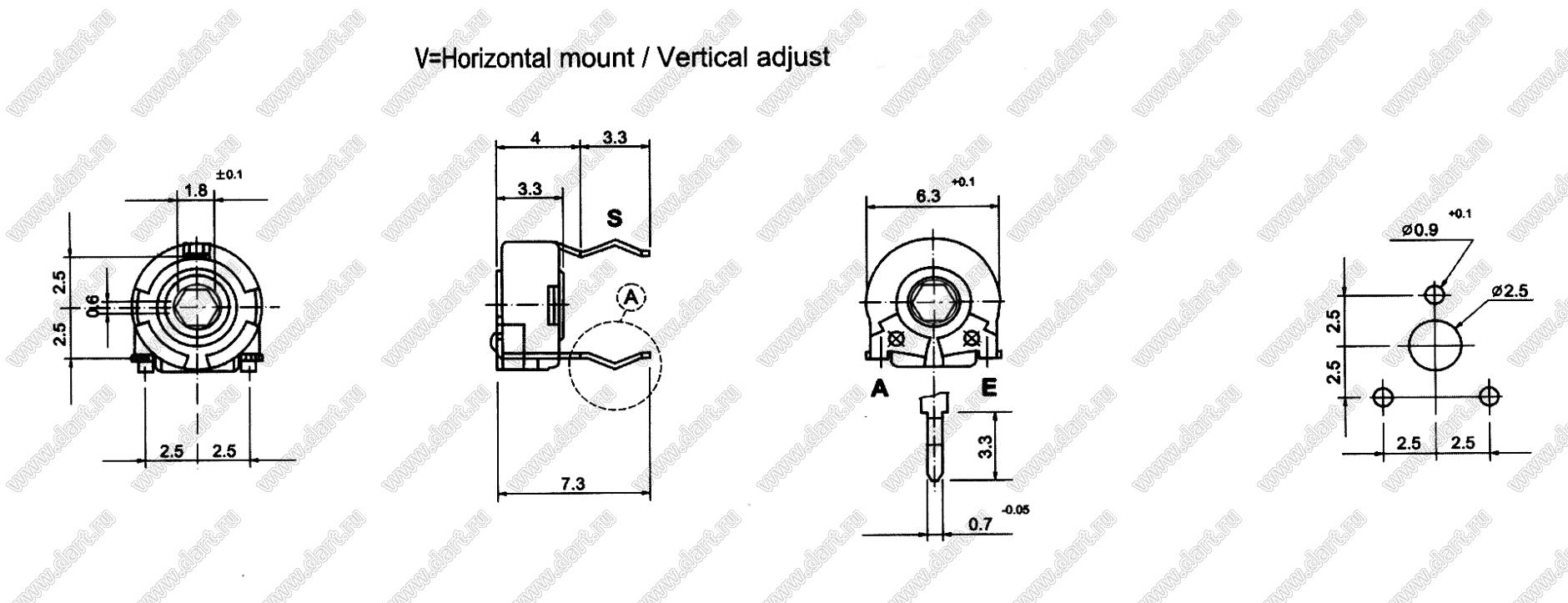 Каталог > Электронные компоненты, радиодетали > Резисторы > Резисторы подстроечные > Углеродные подстроечные потенциометры > PT6 серия > PT6-M-V-501