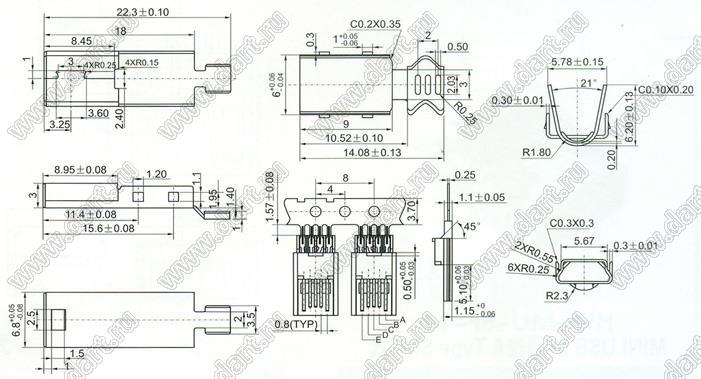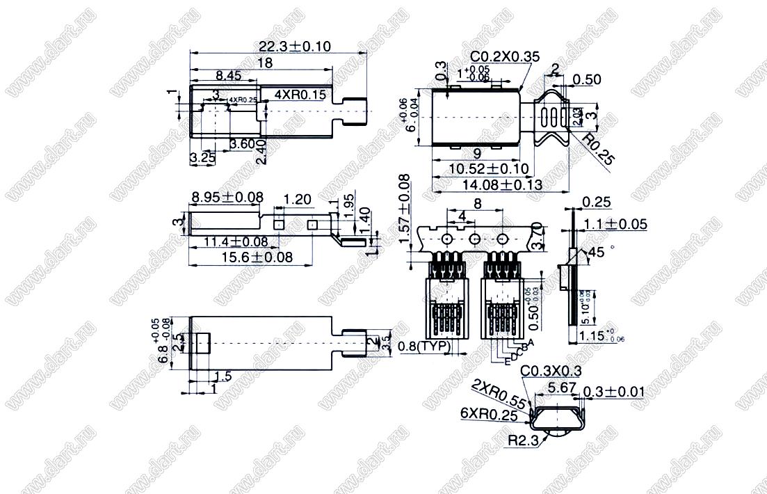 Каталог > Электронные компоненты, радиодетали > Разъёмы (соединители, переходники) > Разъемы USB > Разъемы мини USB > US10-069 (HW-MU-5M-11, MI-5P)