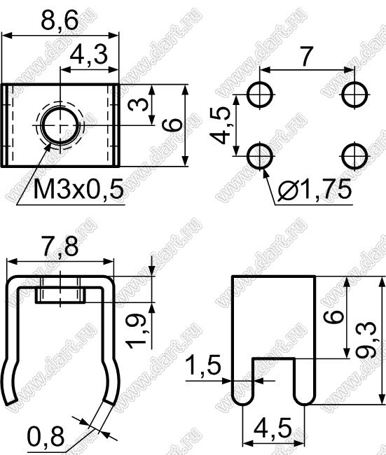Каталог > Фурнитура для электронных устройств > Терминалы для печатных плат > Терминалы винтовые для пайки в печатную плату > PCB-17