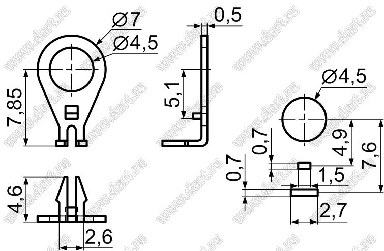 Каталог > Фурнитура для электронных устройств > Наконечники кабельные и клеммы FASTON россыпью в пакетах > Наконечники кабельные неизолированные россыпью в пакетах > Лепестки заземления > GND-35