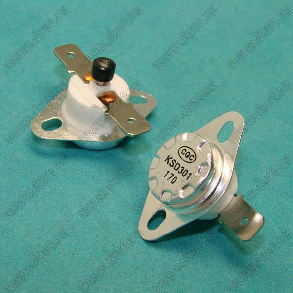 Каталог > Электронные компоненты, радиодетали > Устройства защиты (предохранители, разрядники, фильтры помехоподавляющие) > Термопредохранители, термоконтакты и термостаты > Термостаты KSD301 (KSD302) серии > Термостаты KSD301(KSD302) серии: тип FBHL неподвижный фланец, горизонтальные выводы > KSD301(KSD302)-170-FBHL-RESET-C-N-B close 15A