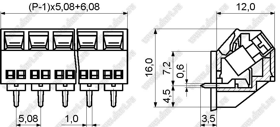 Каталог > Электронные компоненты, радиодетали > Клеммники (колодки клеммные) > Клеммники винтовые для монтажа в отверстия печатных плат > Винтовые клеммники (шаг 5,08 мм) > KF127SF-5.08 (DG127SF-5.08) серия > KF127SF-5.08-02P-14