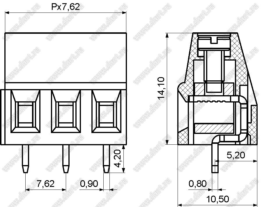 Каталог > Электронные компоненты, радиодетали > Клеммники (колодки клеммные) > Клеммники винтовые для монтажа в отверстия печатных плат > Винтовые клеммники (шаг 7,62 мм) > KF128-7.62 серия > KF128-7.62-02P-14