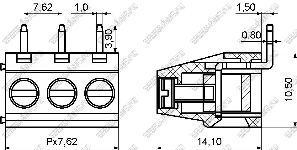 Каталог > Электронные компоненты, радиодетали > Клеммники (колодки клеммные) > Клеммники винтовые для монтажа в отверстия печатных плат > Винтовые клеммники (шаг 7,62 мм) > KF128R-7.62 серия > KF128R-7.62-03P-14