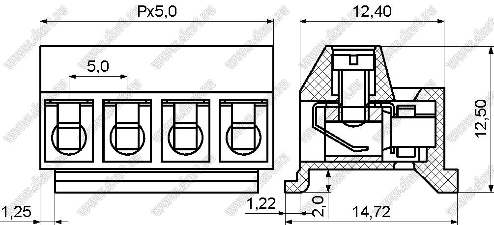 Каталог > Электронные компоненты, радиодетали > Клеммники (колодки клеммные) > Клеммники винтовые для монтажа в отверстия печатных плат > Винтовые клеммники (шаг 5,0 мм) > KF331-5.0 (DG331-5.0) серия > KF331-5.0-08P-13