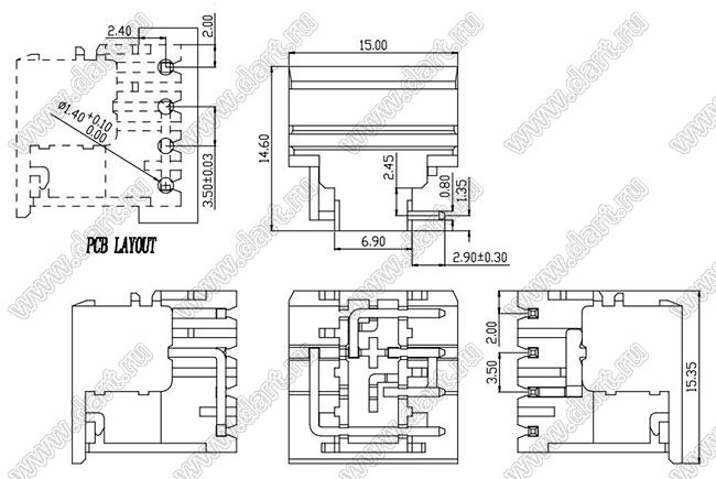 Каталог > Электронные компоненты, радиодетали > Клеммники (колодки клеммные) > Клеммники разъемные > Разъемные клеммники шаг 3,5 мм > KF2EDGLF-3.5 серия > KF2EDGLF-3.5-04P-11