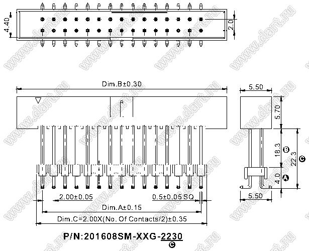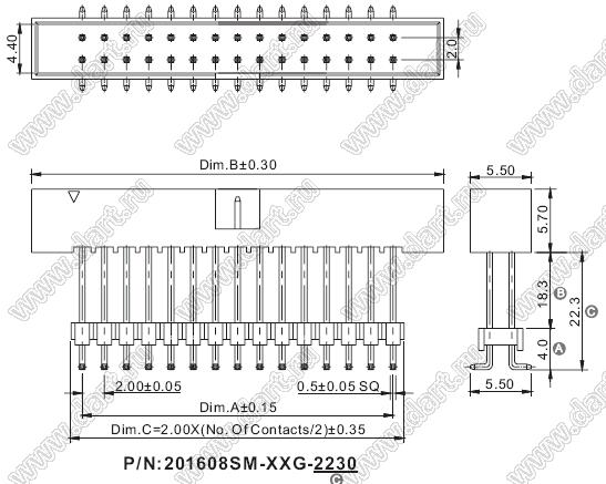 Каталог > Электронные компоненты, радиодетали > Разъёмы (соединители, переходники) > Разъемы IDC для плоского кабеля (шлейфа) > 2,00 x 2,00 > 201608SM-XXG-2230 (3220-XX) серия > 201608SM-16G-2230